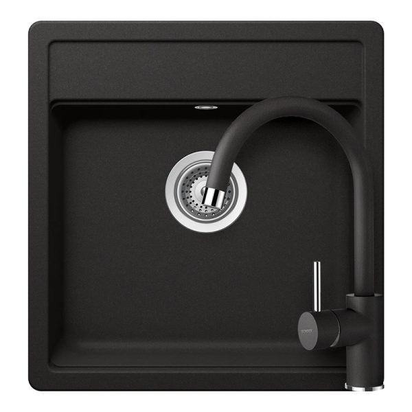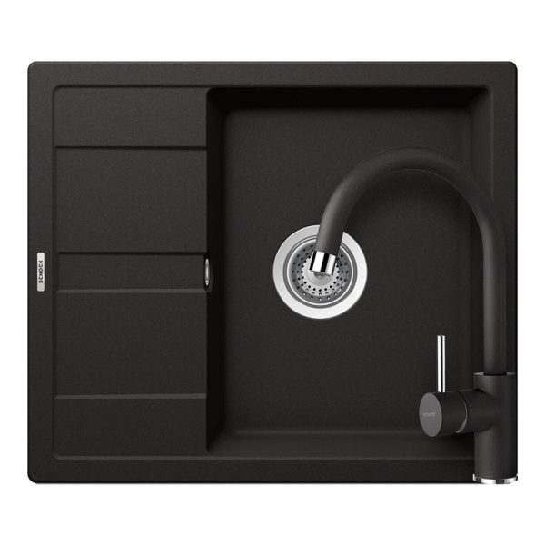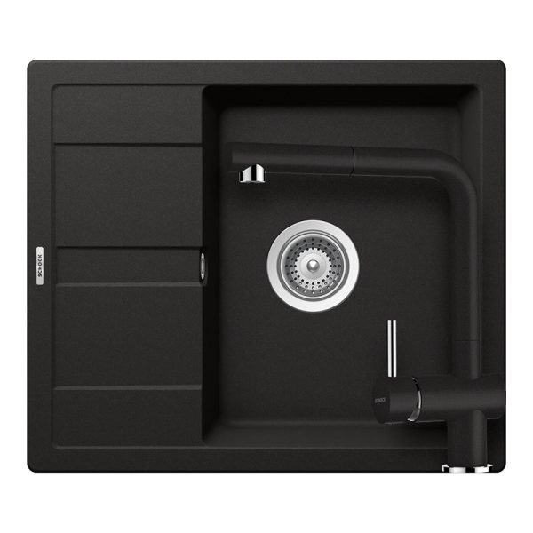 Set Chiuveta Granit Schock Nemo N-100S + Baterie Schock Plutos Nero Cristalite