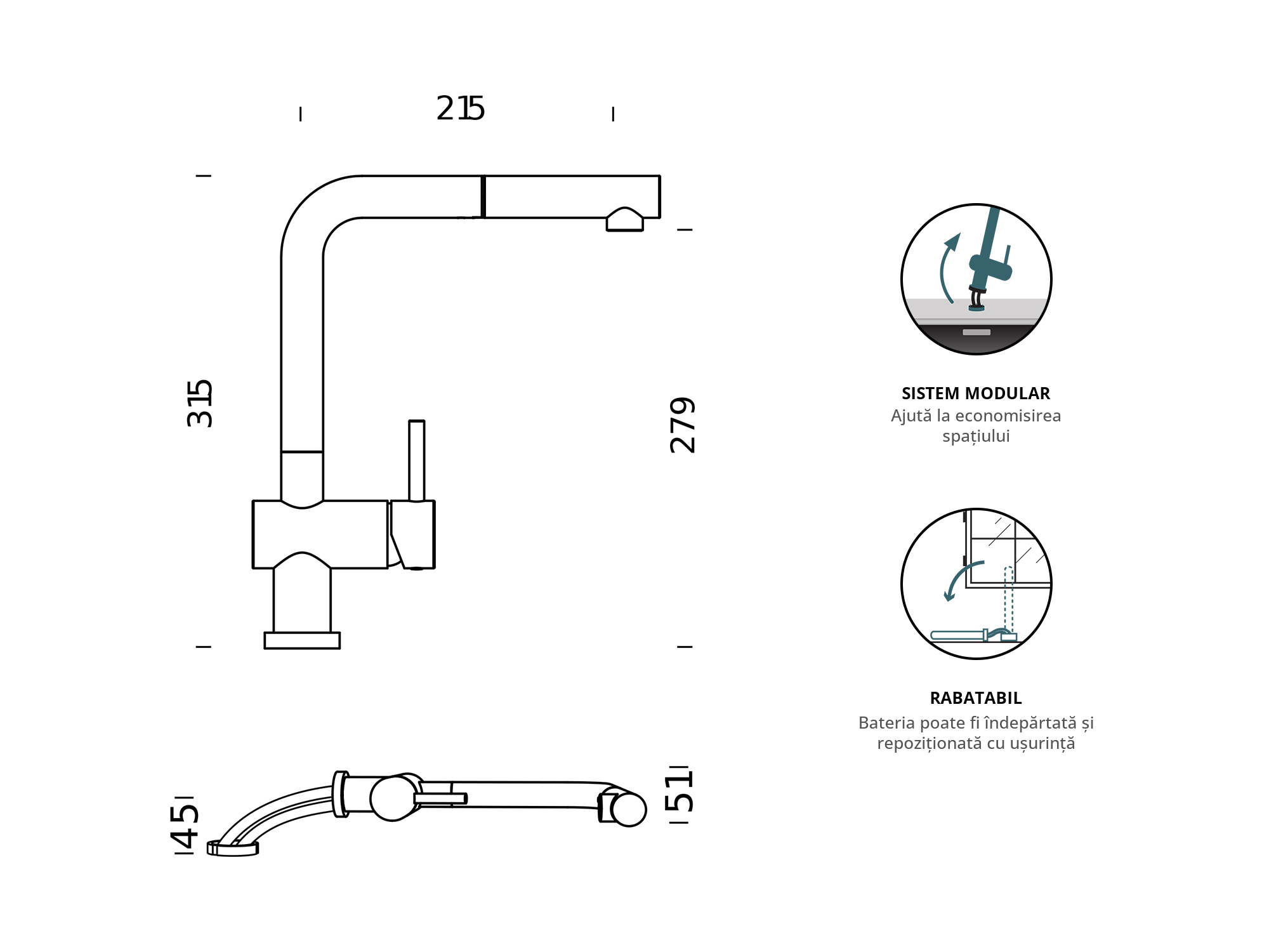 • Inaltime totala: 315 mm